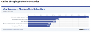 This Forbes graph outlines the main reasons customers are abandoning their carts based on previous years: